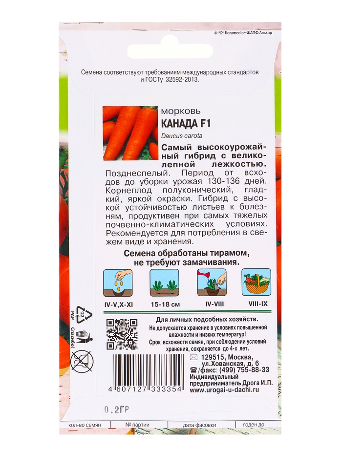 Набор семян Морковь "Канада", 5 шт. — Характеристики