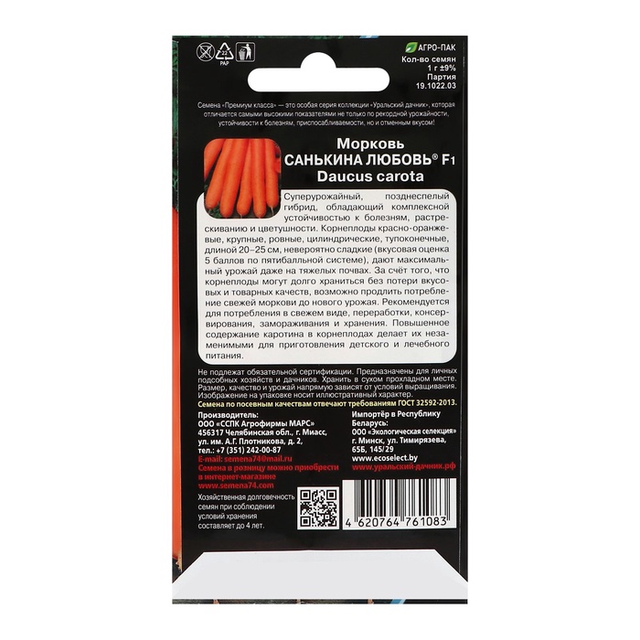 Набор семян Морковь «Санькина любовь», F1, 5 пакетиков, «Уральский дачник» — Характеристики