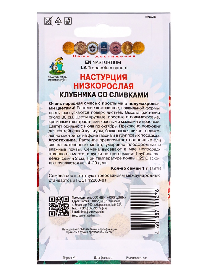 Набор семян Настурция низкорослая "Клубника со сливками", 5 шт. — Характеристики