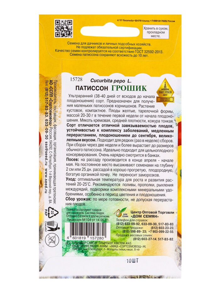 Набор семян Патиссон "Грошик", 5 шт. — Характеристики