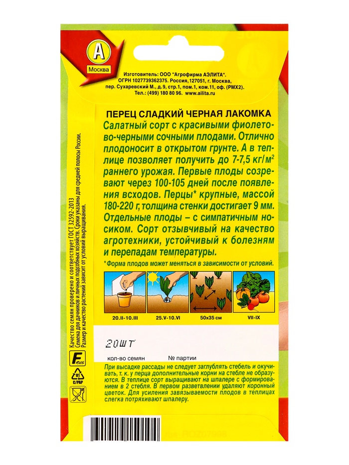 Набор семян Перец сладкий "Черная лакомка", 5 шт. — Характеристики