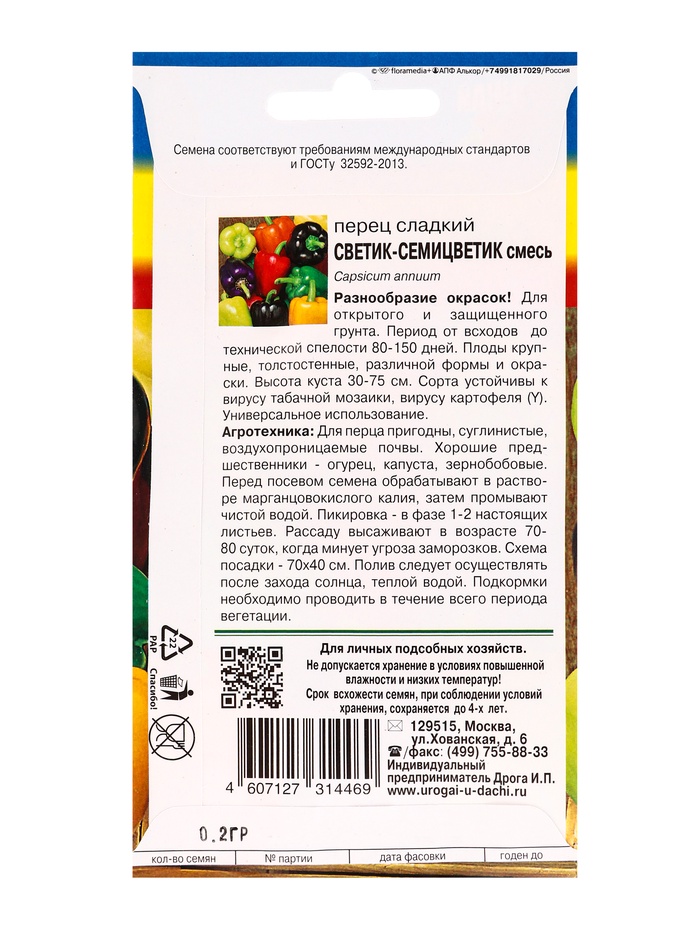 Набор семян Перец сладкий "СВЕТИК-СЕМИЦВЕТИК", смесь, 5 шт. — Характеристики