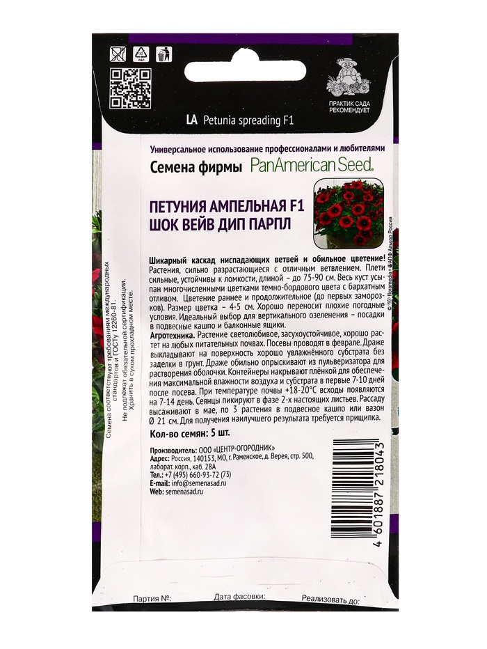 Набор семян Петуния ампельная F1 "Шок Вейв Дип Парпл" , 2 шт. — Характеристики