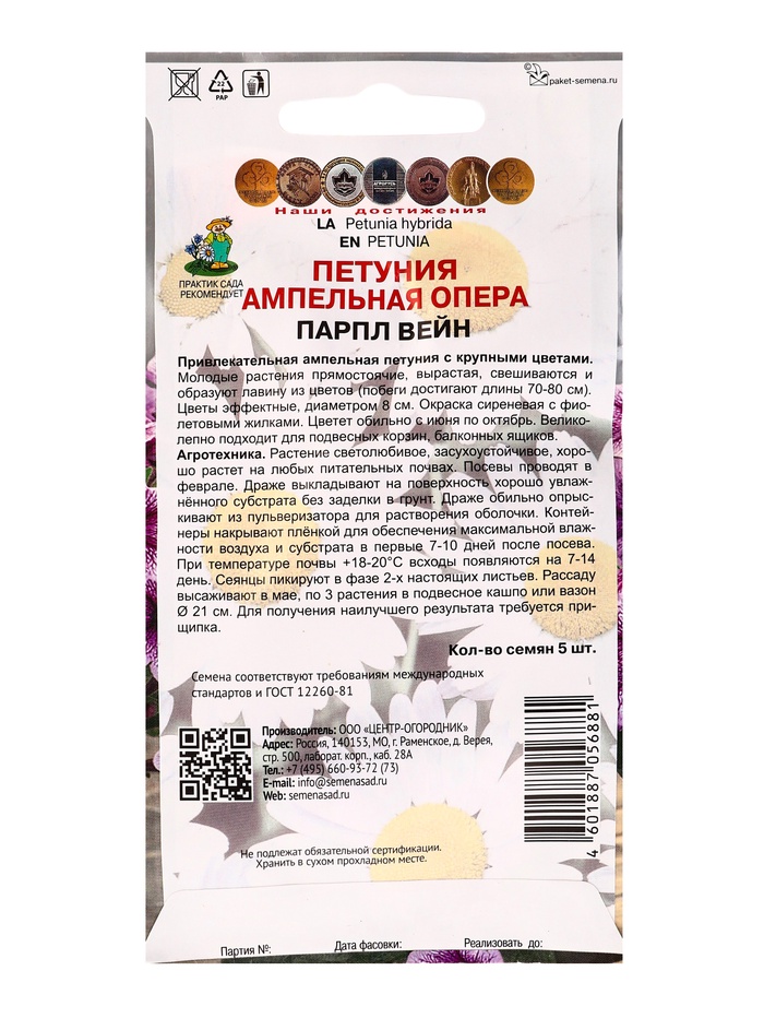 Набор семян Петуния ампельная "Опера Парпл Вейн" , 2 шт. — Характеристики
