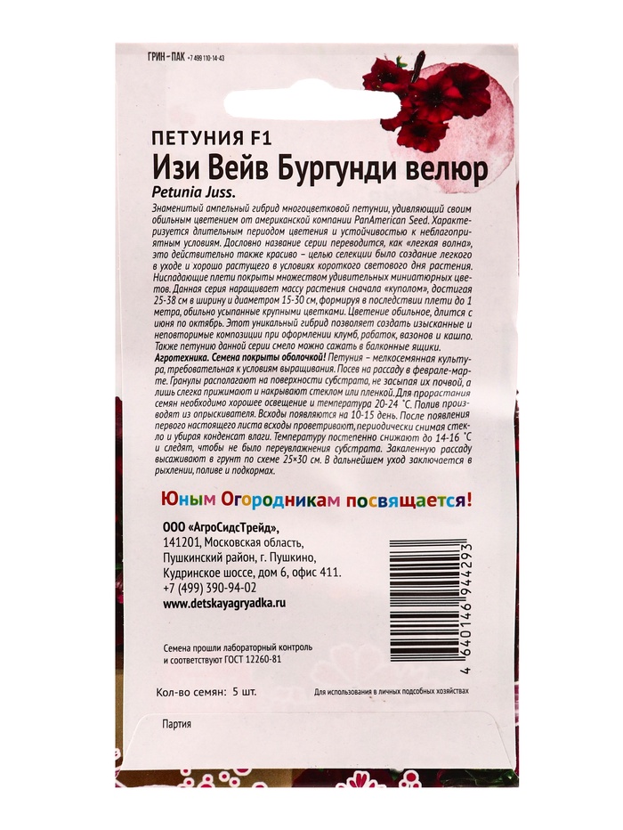Набор семян Петуния "Изи Вейв Бургунди Велюр", F1, 2 шт. — Характеристики