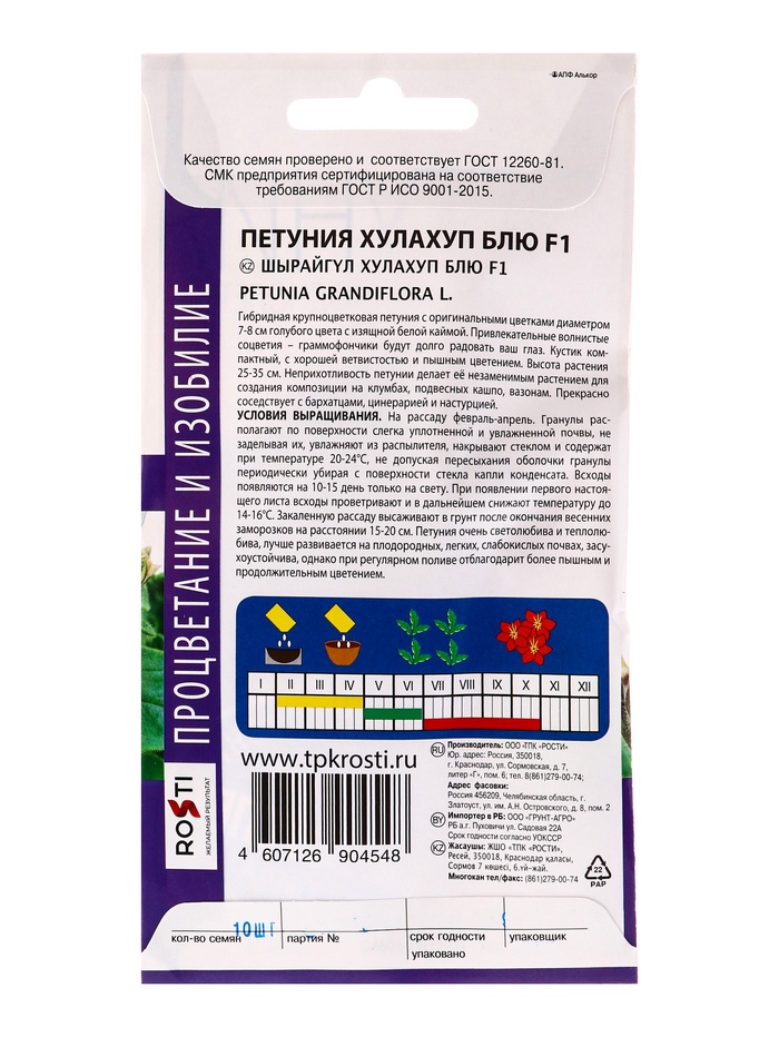 Набор семян Петуния "Хулахуп блю" F1, О, 5 шт. — Характеристики