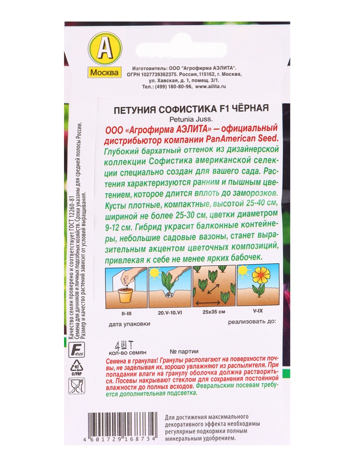 Набор семян Петуния Софистика черная F1 крупноцветковая, 4 шт., 2 шт. — Характеристики