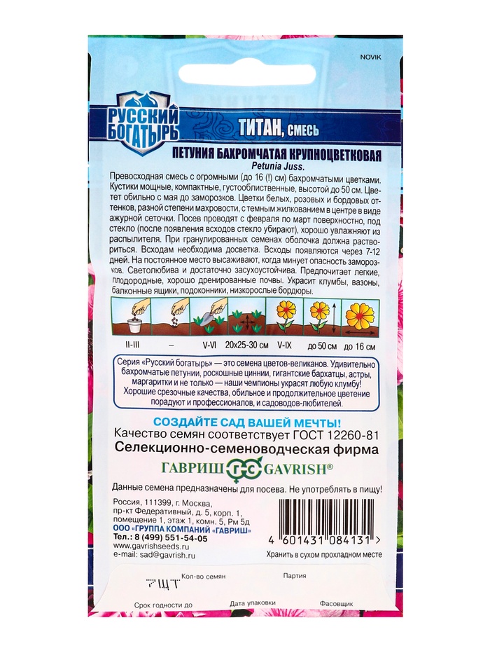 Набор семян Петуния "Титан", бахромчатая, смесь, серия Русский богатырь, 5 шт. — Характеристики