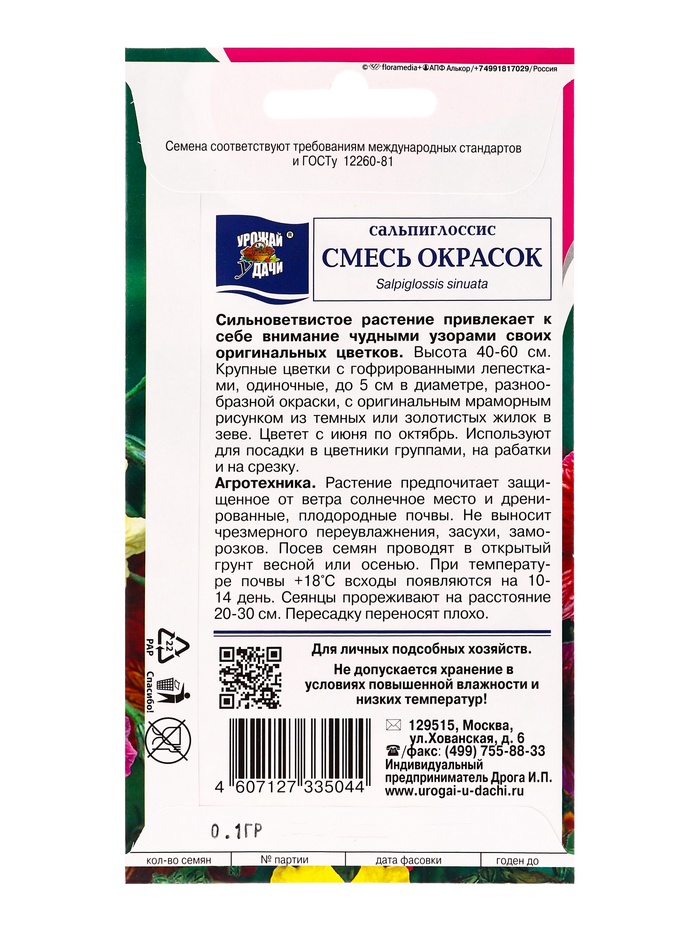 Набор семян Сальпиглоссис "Смесь", 5 шт. — Характеристики