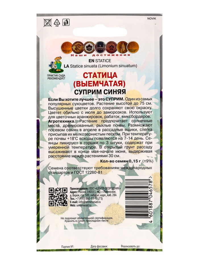 Набор семян Статица "Суприм синяя", 5 шт. — Характеристики