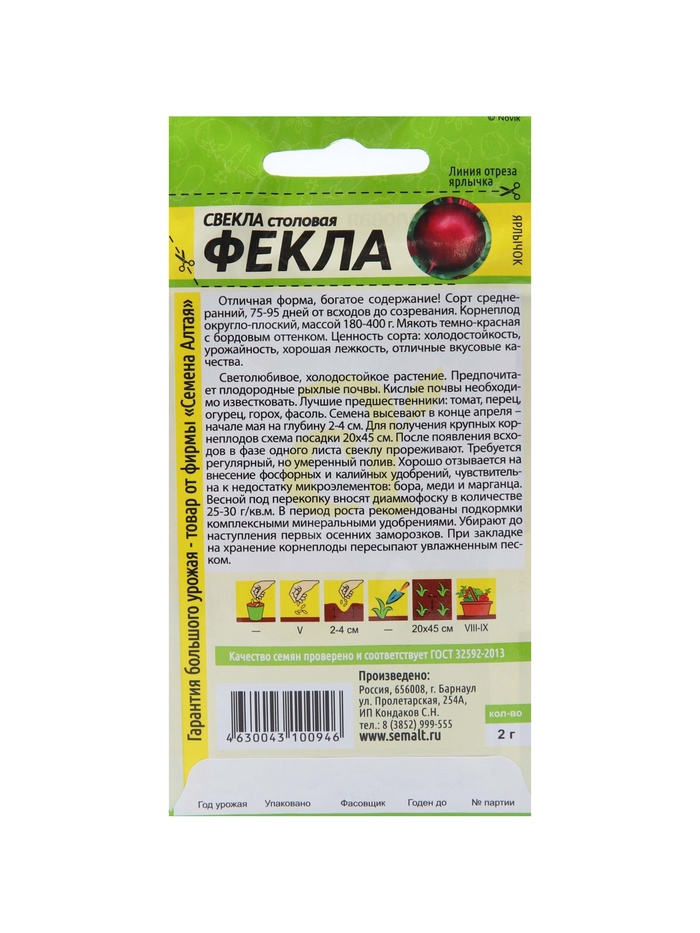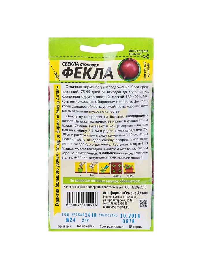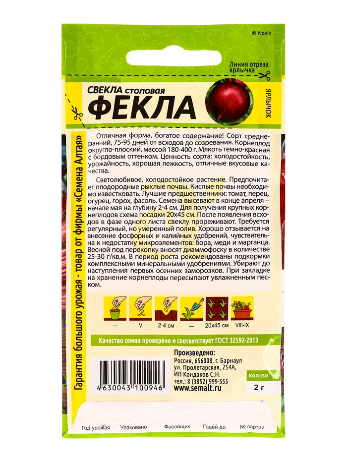 Набор семян Свекла "Фекла", 5 шт. — Характеристики