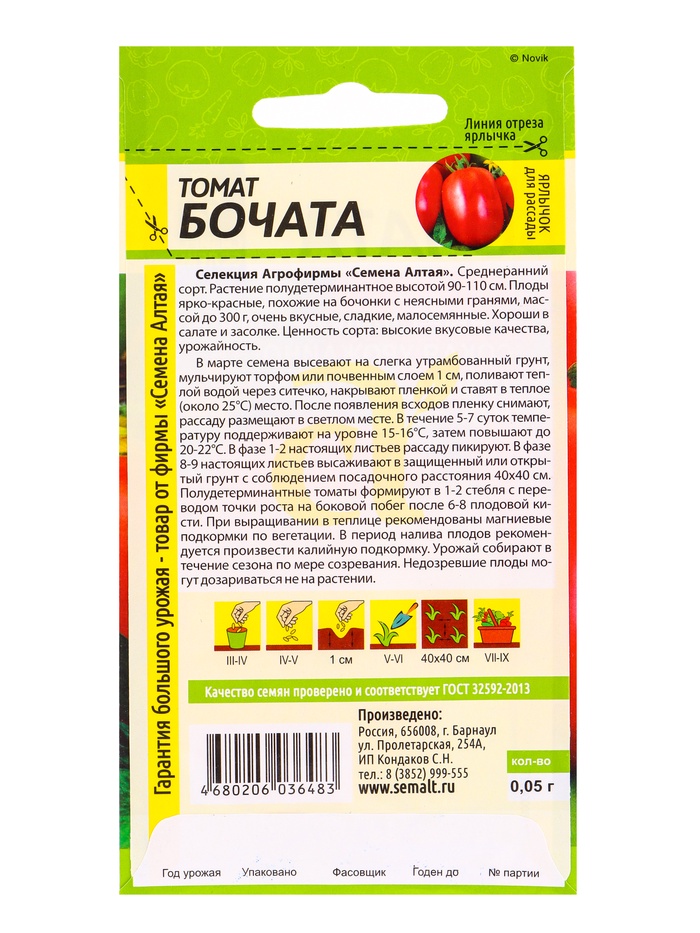 Набор семян Томат "Бочата", среднеранний, цп, 5 шт. — Характеристики