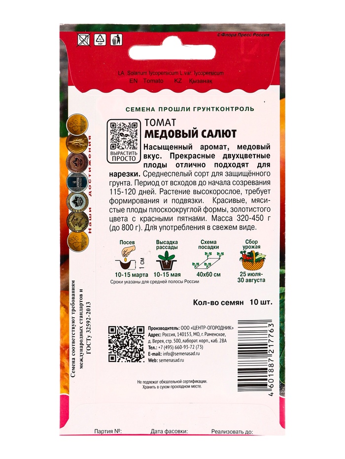 Набор семян Томат "Медовый салют",индетерминантный,высокорослый, 5 шт. — Характеристики