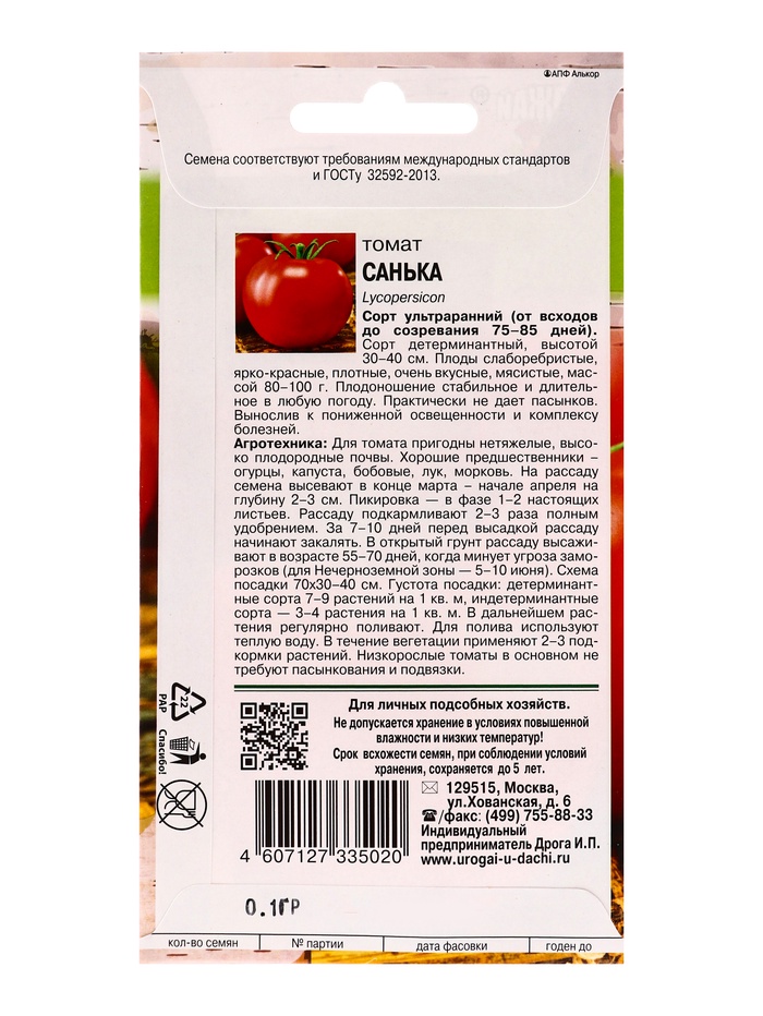 Набор семян Томат "Санька",детерминантный,низкорослый, 5 шт. — Характеристики