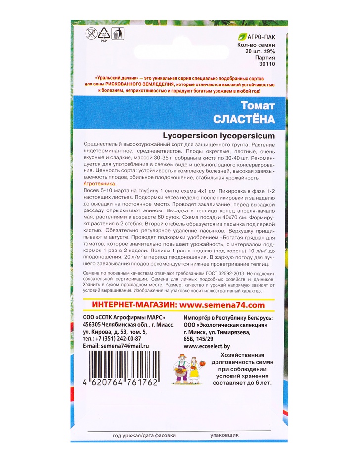 Набор семян Томат "Сластёна" , 5 шт. — Характеристики