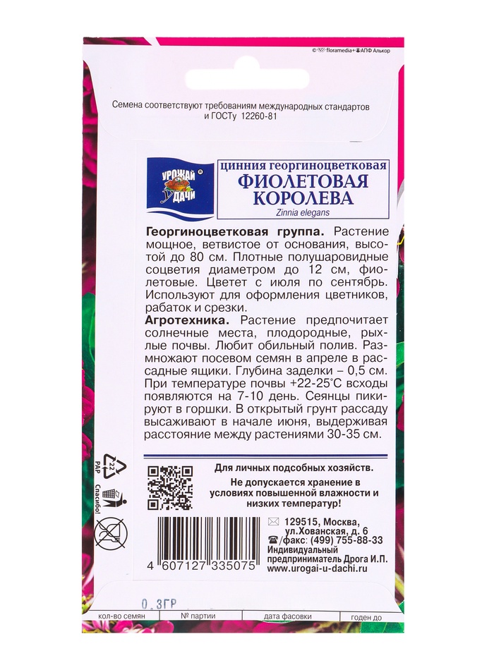 Набор семян Цинния георгин. "Фиолетовая королева", 5 шт.
