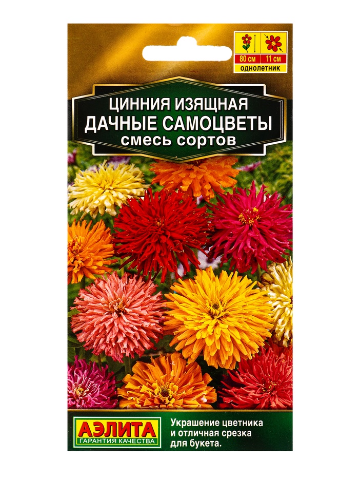 Семена цветов Цинния Дачные самоцветы, смесь сортов Золотая серия, Ц/П,0,3 г