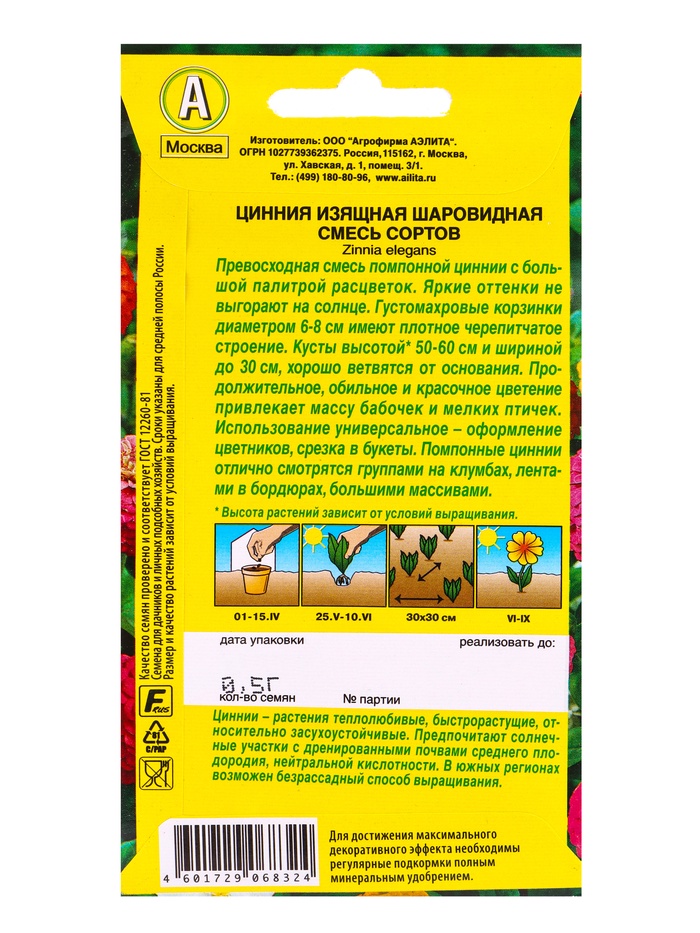 Набор семян Цинния Шаровидная, смесь окрасок, О, 5 шт. — Характеристики