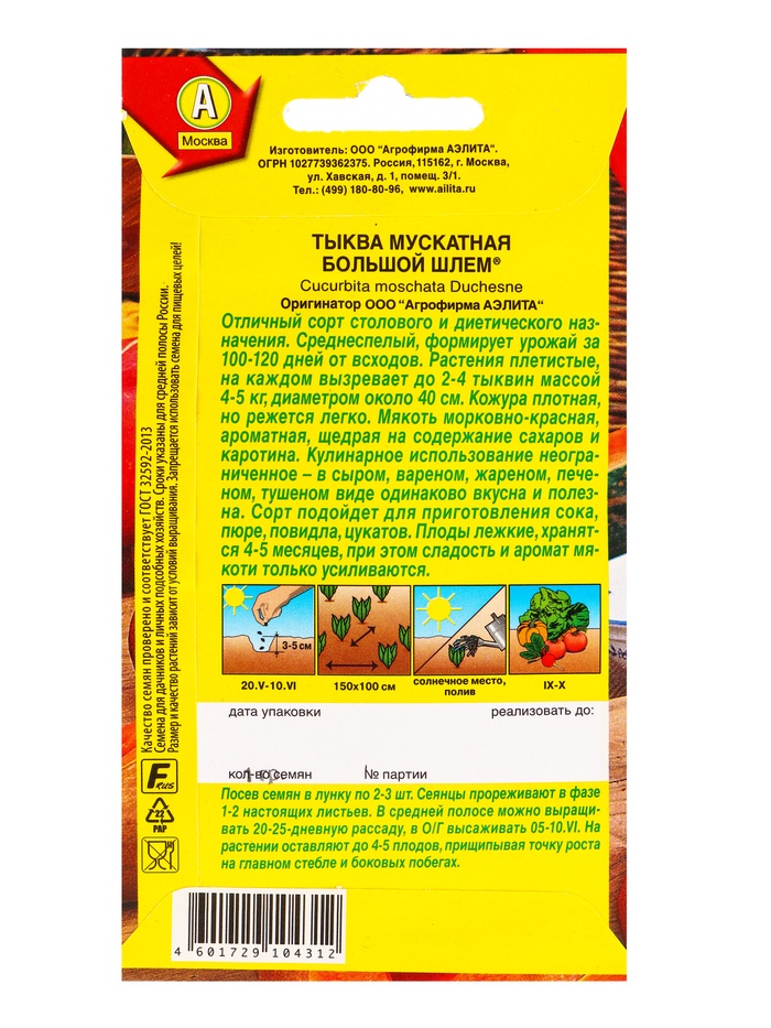 Набор семян Тыква мускатная "Большой шлем", 5 шт. — Характеристики