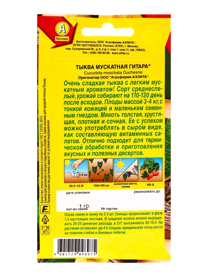 Набор семян Тыква мускатная "Гитара", 5 шт. — Характеристики