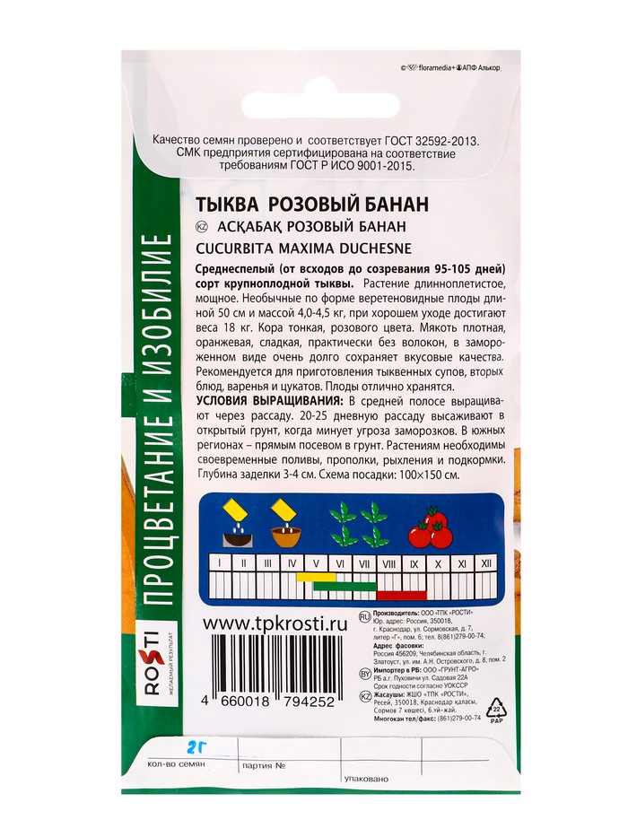 Набор семян Тыква «Розовый банан», 5 шт., «Мой выбор» — Характеристики