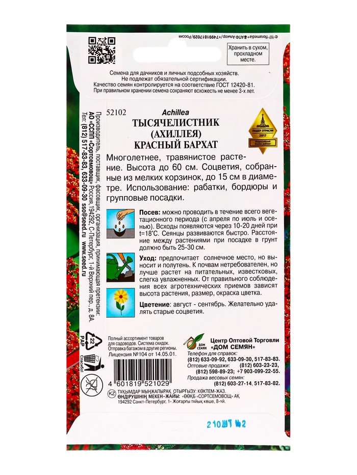 Набор семян Тысячелистник "Ахиллея", 5 шт. — Характеристики