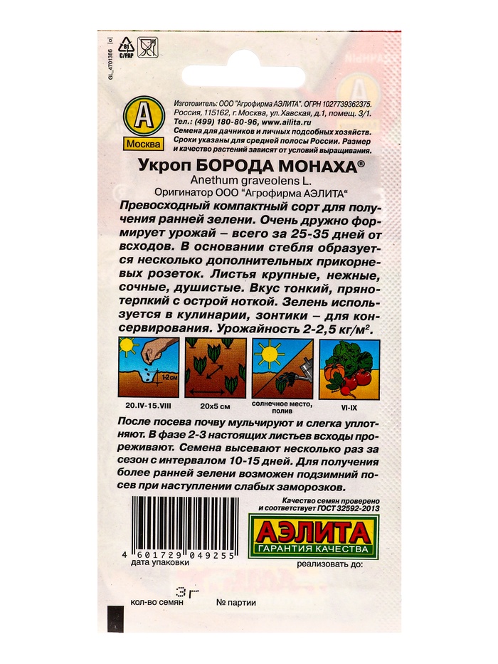Набор семян Укроп "Борода монаха", 5 шт. — Характеристики