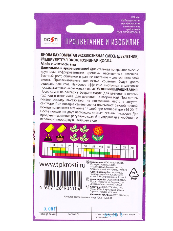 Набор семян Виола "Эксклюзивная смесь", 5 шт. — Характеристики