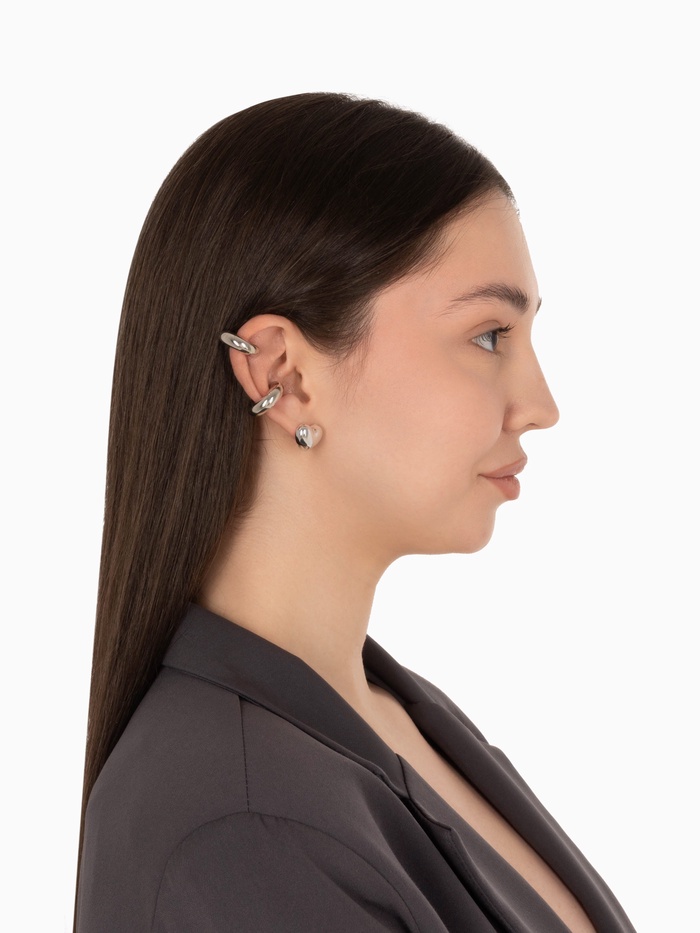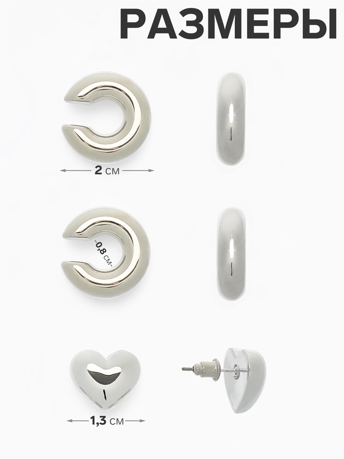Набор серег и кафф QF «Бублик», 3 шт. сердце, цвет серебро — Характеристики