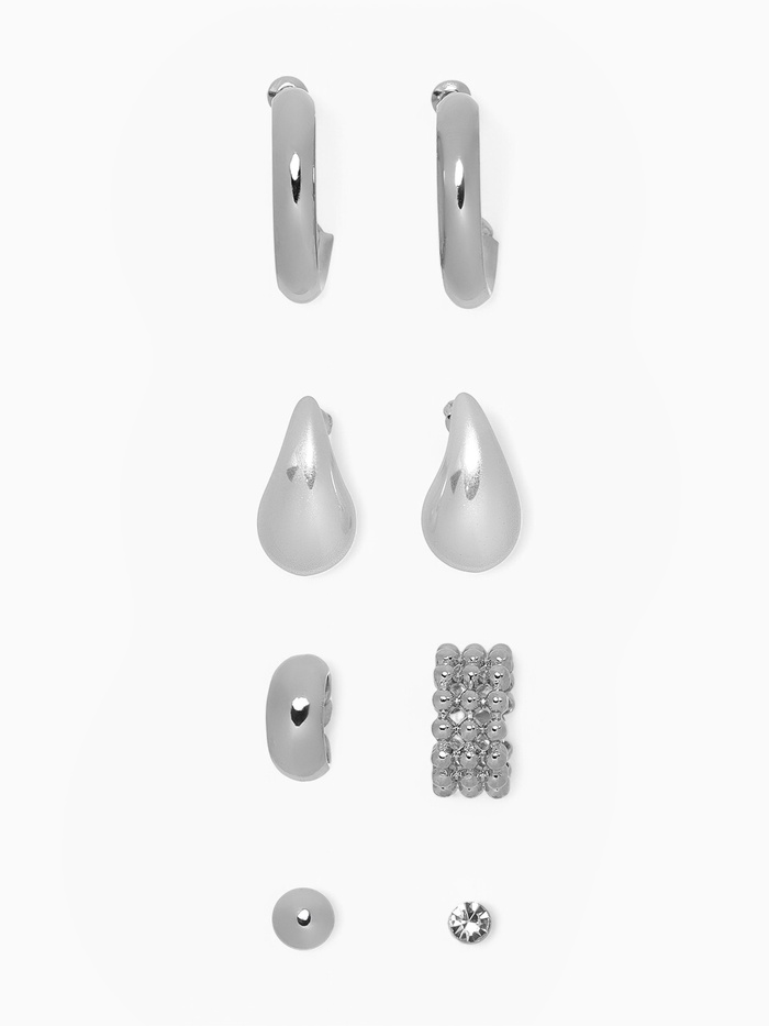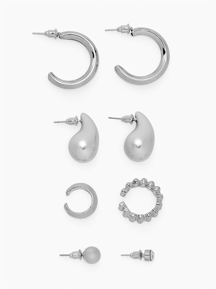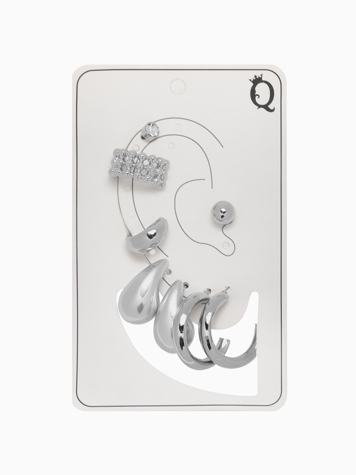 Набор серег и кафф QF «Кольца», 8 шт. капли, цвет серебро — Характеристики