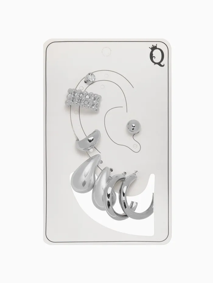 Набор серег и кафф QF «Кольца», 8 шт. капли, цвет серебро