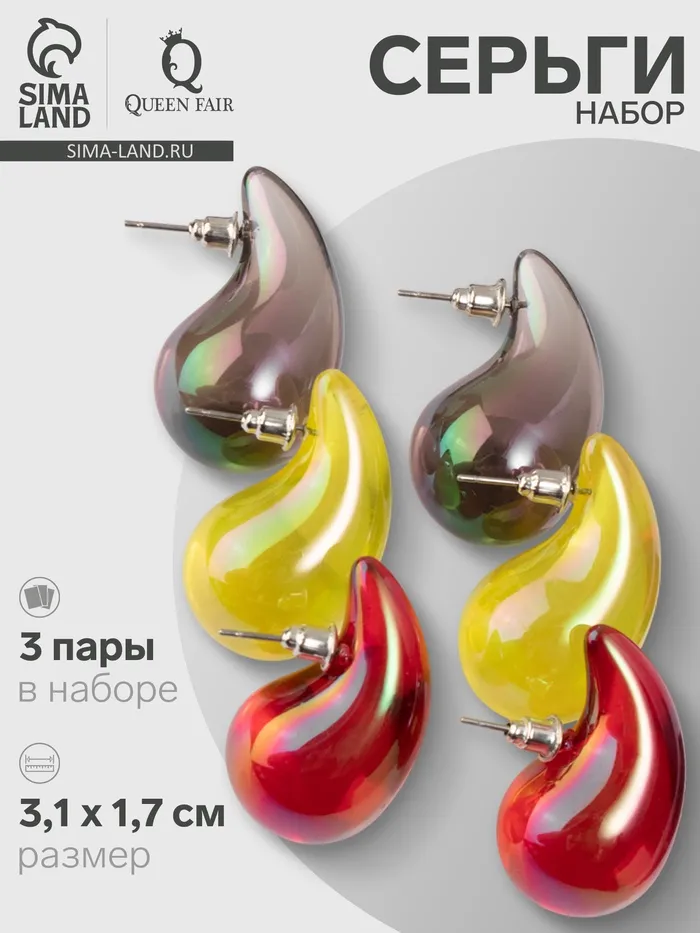 Набор серег QF «Гламур», 3 пары, шик макси, цветной — Характеристики