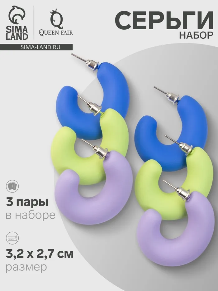 Набор серег QF «Гламур», 3 пары, шик мини, цветной — Характеристики