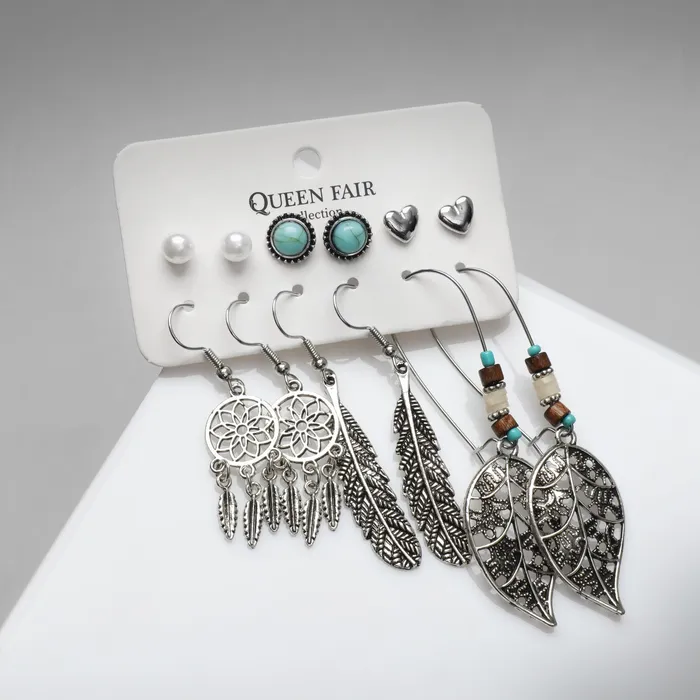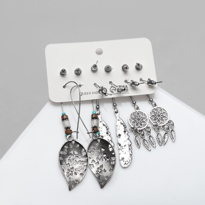 Набор серег QF «Хиппи», 6 пар, ловец снов, цветные в чернёном серебре — Характеристики