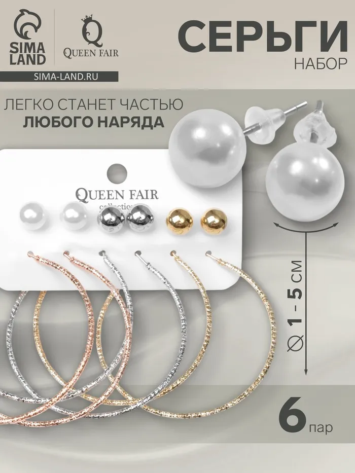 Набор серег QF «Настроение», 6 пар, нюанс, цвет МИКС, d=5 см — Характеристики