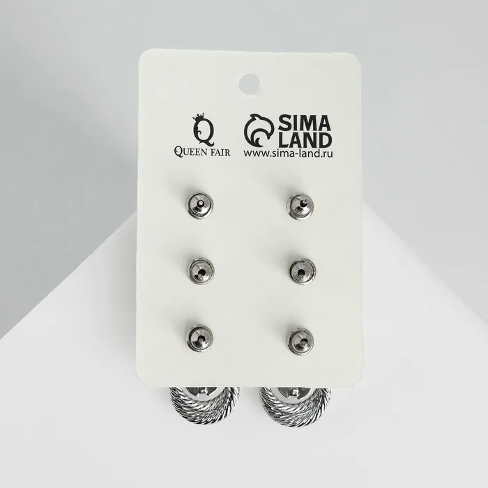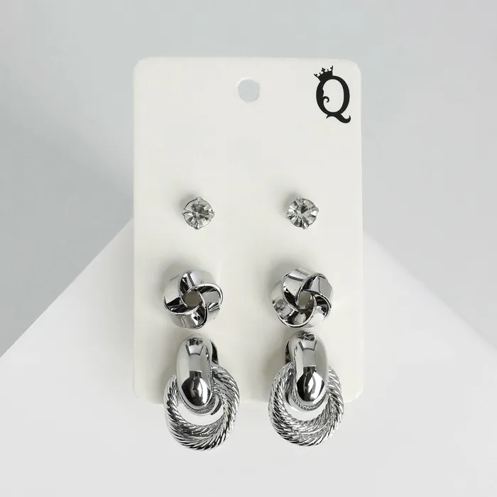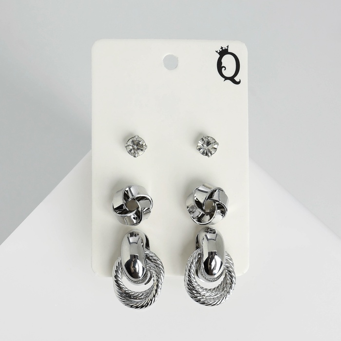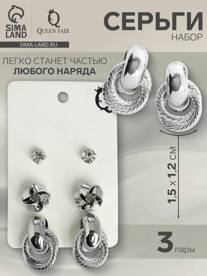 Набор серег QF «Нежность», 3 пары, кольца Сатурна, цвет белый в серебре — Характеристики
