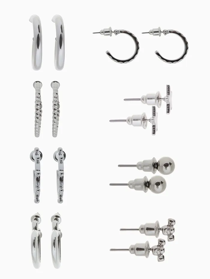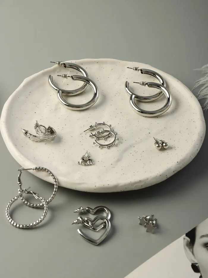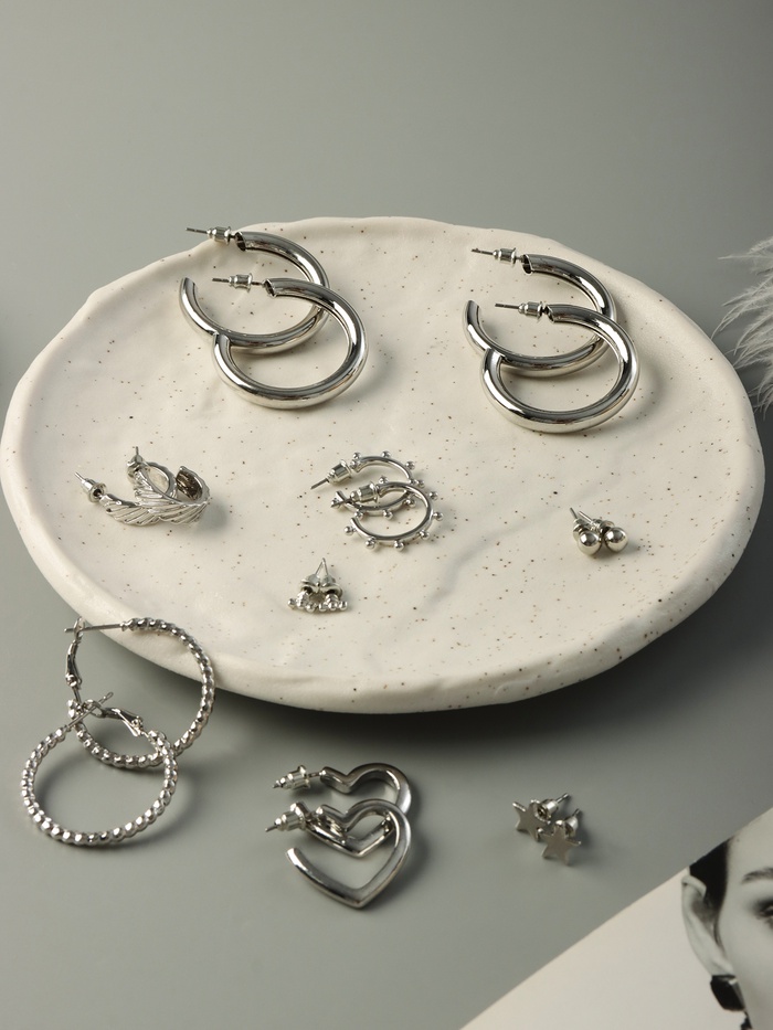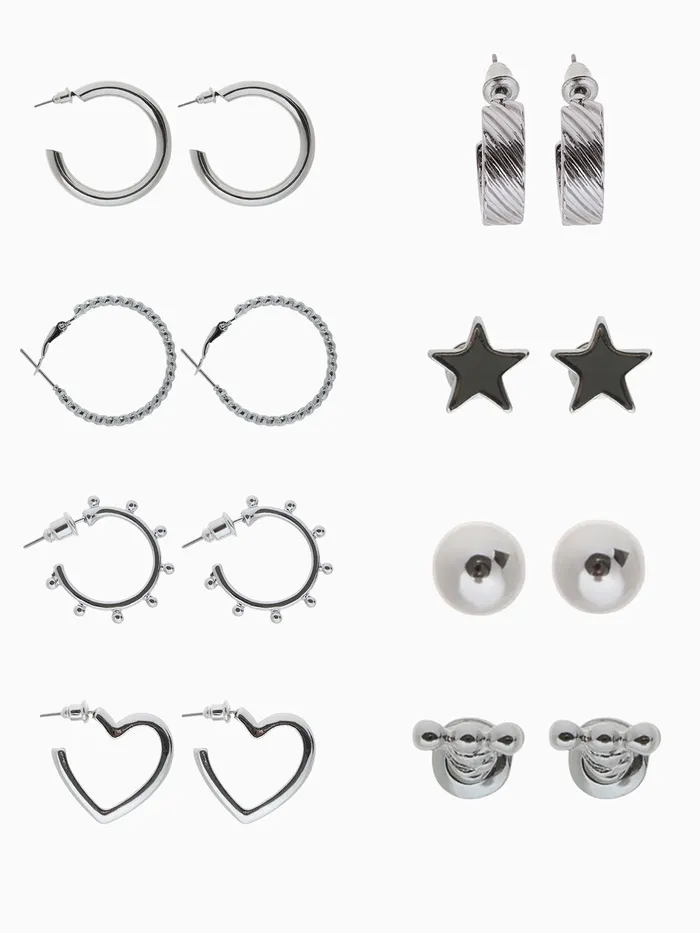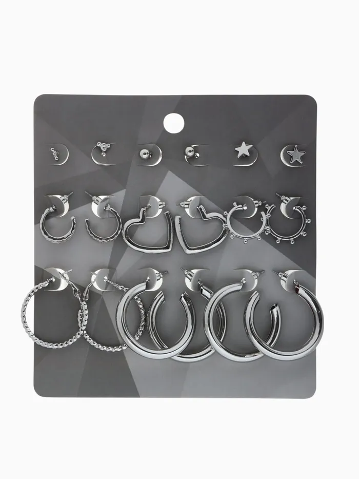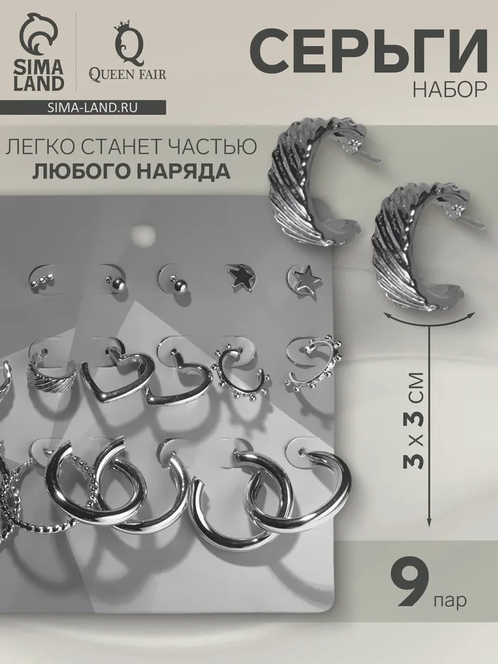 Набор серег QF «Звёзды», 9 пар, рисунок, цвет серебро, d=3 — Характеристики