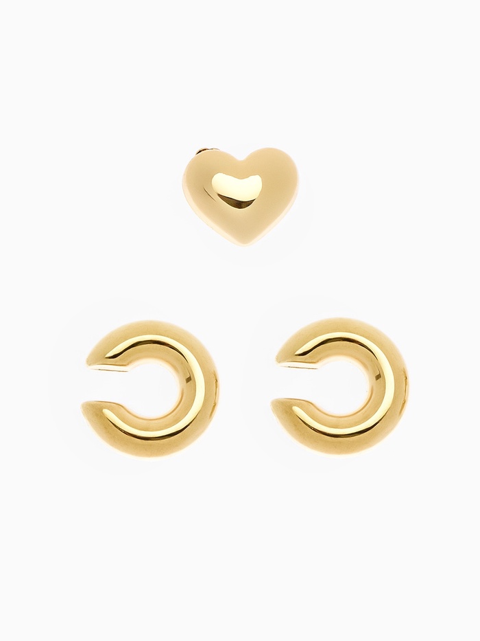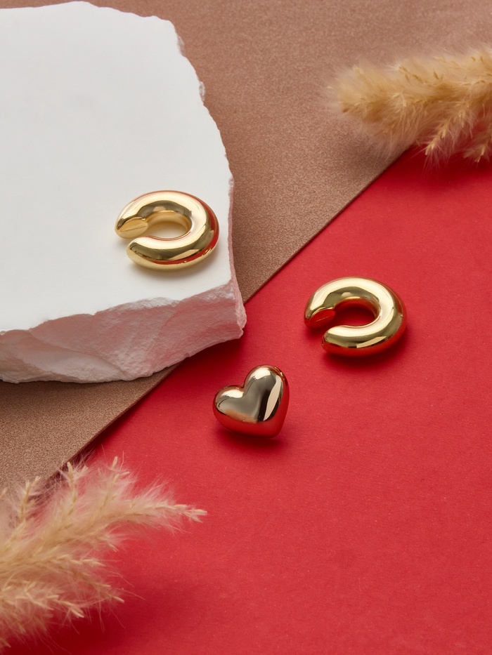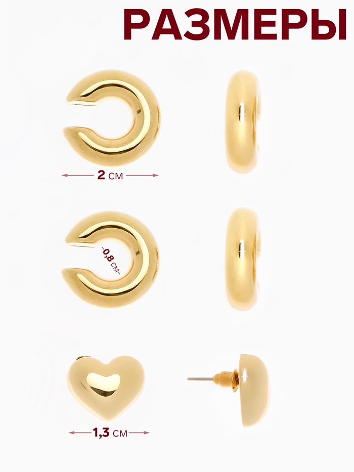 Набор серьги и каффы 3 шт. «Бублик» сердце, цвет золото — Характеристики