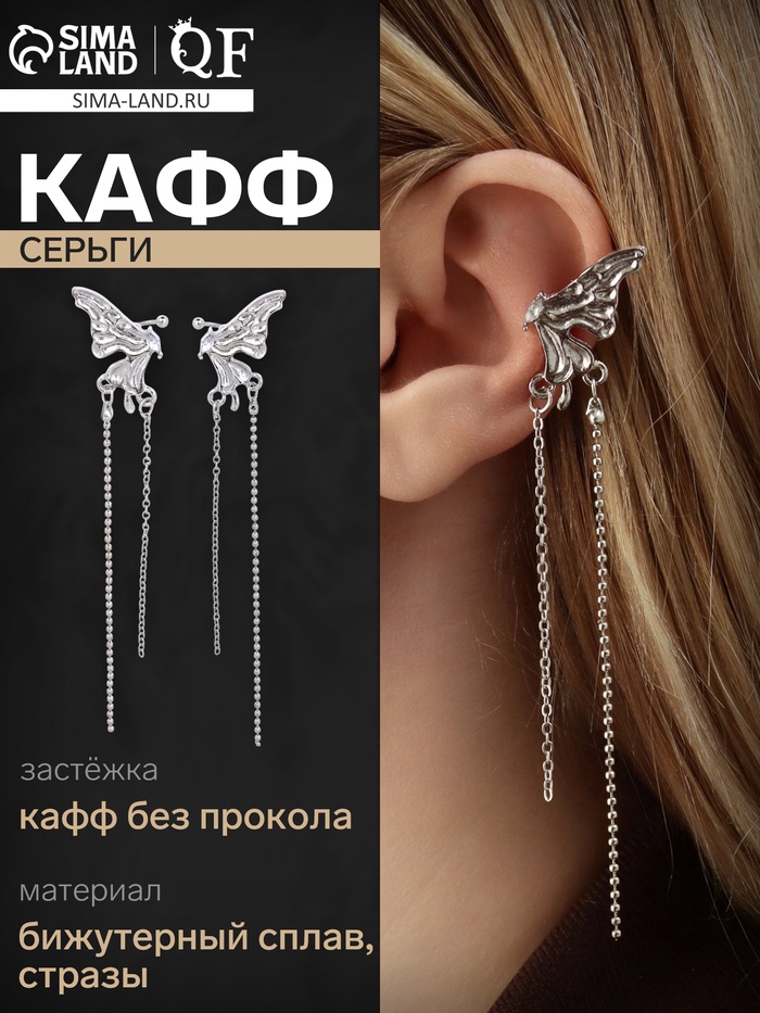 - Свобода в сочетаниях: каффы без прокола легко фиксируются на ухе, позволяя менять расположение украшений и создавать уникальные стили.
