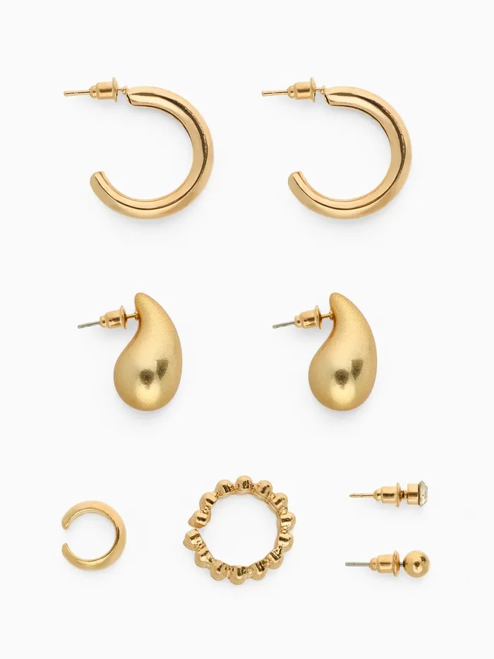 Набор серьги и каффы 8 шт. «Кольца» капли, цвет золото — Характеристики