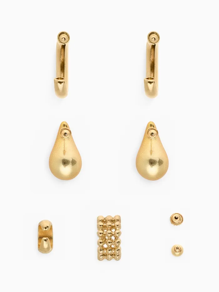 - Многообразие украшений: восемь элементов в наборе позволяют комбинировать серьги и каффы, создавая уникальные образы для любого случая.