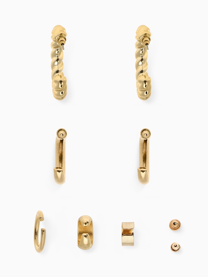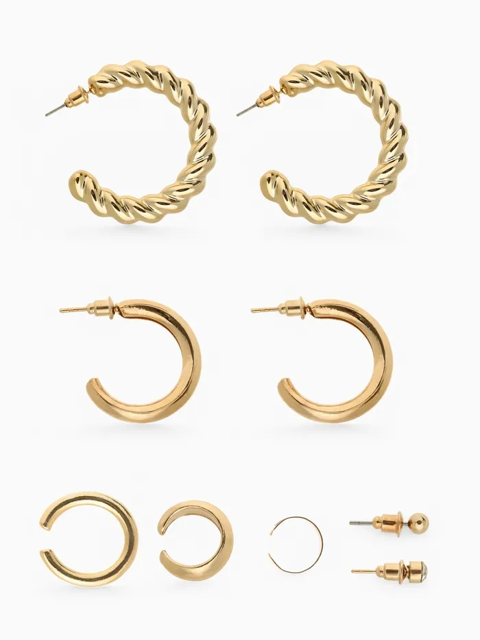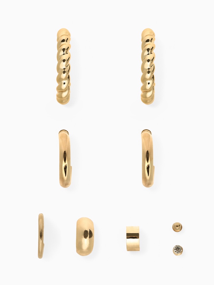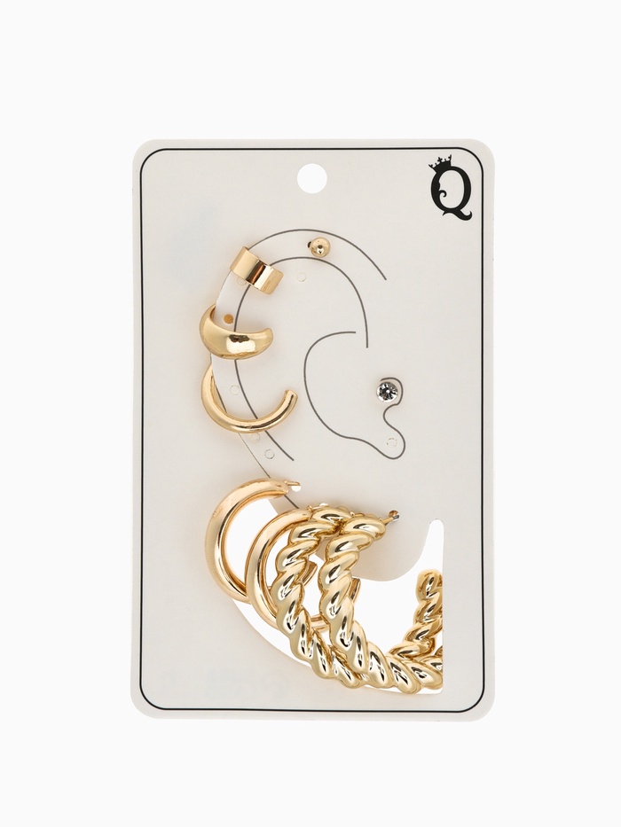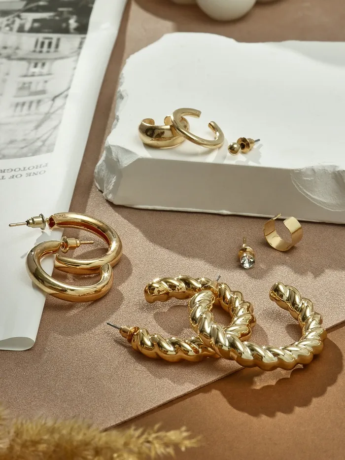 Откройте для себя мир стиля и утонченности с набором, который включает девять изысканных украшений: серьги и каффы с уникальным переплетением в золотистом цвете. Эти аксессуары созданы для женщин, которые ценят минималистичный дизайн и стремятся подчеркнуть свою индивидуальность.