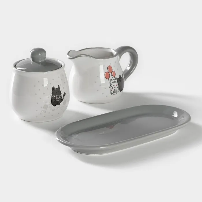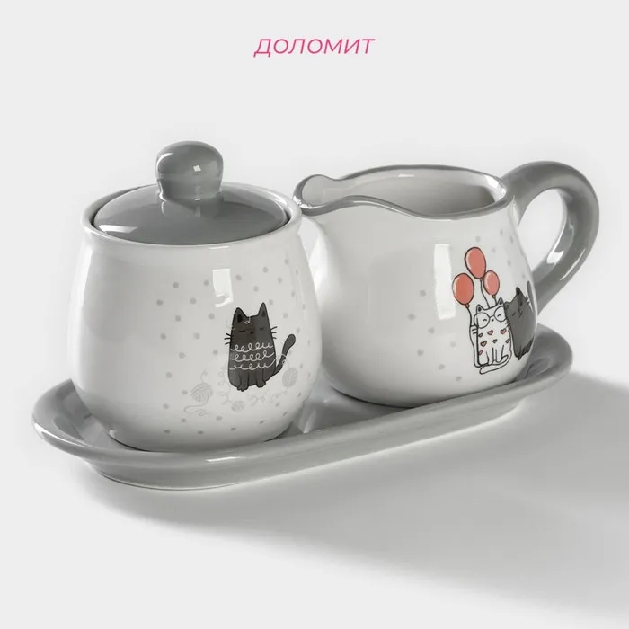 Набор сервировочный Доляна «Уютные коты», 2 предмета: молочник 270 мл, сахарница 310 мл — Характеристики