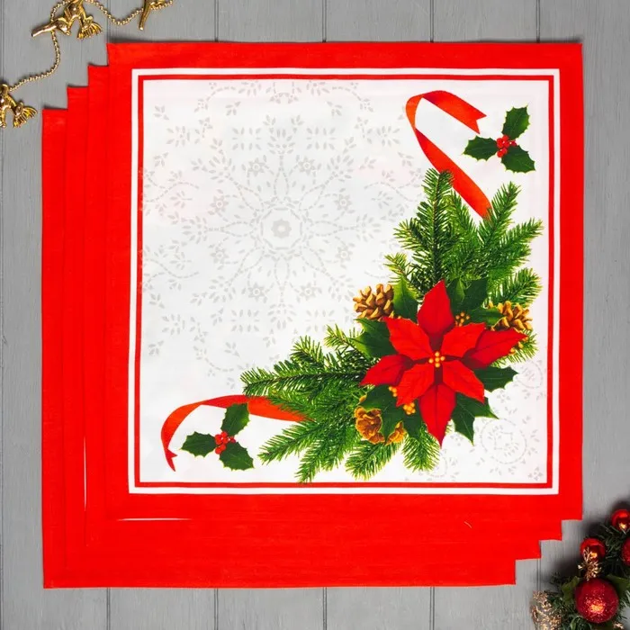 Набор сервировочных салфеток "Этель" Рождественский бал 40х40см 4 штуки, 100% хлопок, саржа 190 гр/м2 — Характеристики