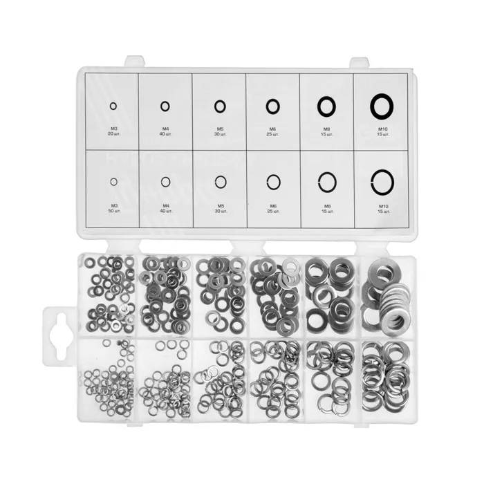 Набор шайб плоских и пружинных ТУНДРА krep, 350 предметов