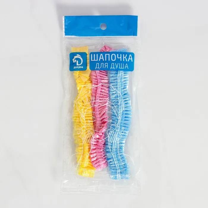 Набор шапочек для душа Доляна, 3 шт, полиэтилен, цвет МИКС — Характеристики