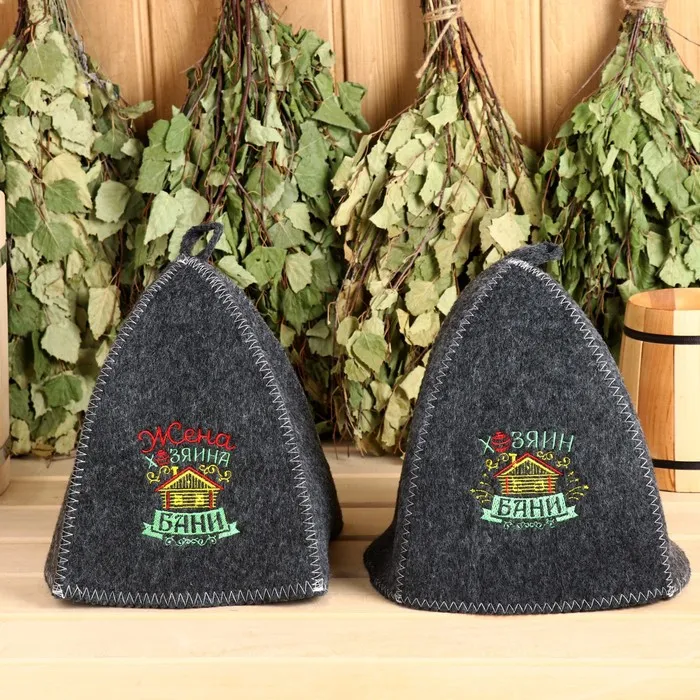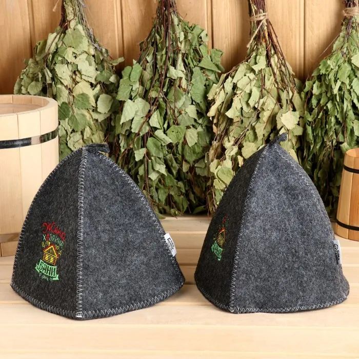 Для комфортного отдыха в парной возьмите с собой набор банных принадлежностей. Предметы из этого комплекта предохраняют тело от перегрева и являются средствами индивидуального пользования. Влажные изделия рекомендуется сушить в расправленном виде на горизонтальной поверхности. Принадлежности из войлока и фетра стирайте вручную при температуре воды 30 °C.