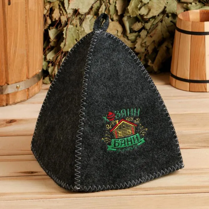 Набор шапок для бани и сауны с вышивкой «Хозяин бани и жена хозяина бани», 2 предмета, шерсть 30%, полиэфир 70%, тёмный, «Банная забава» — Характеристики