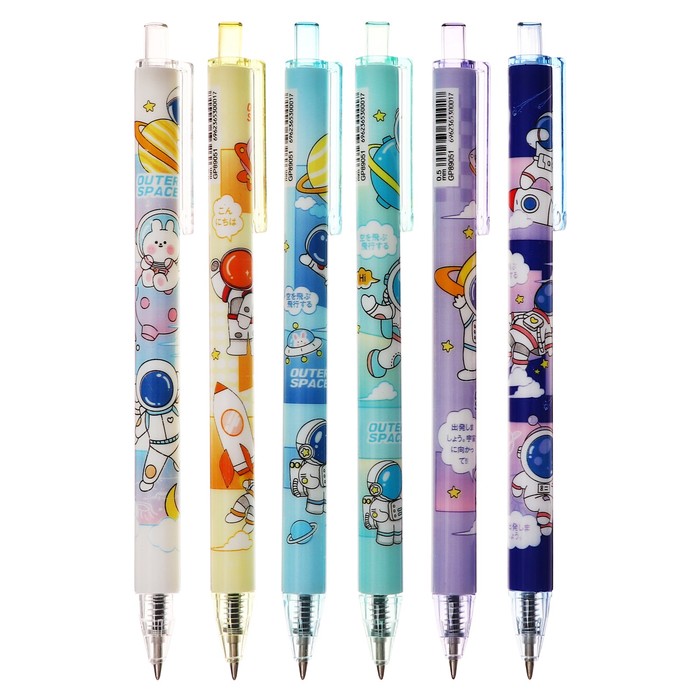 Набор шариковых ручек 12 штук, 0.5 мм, автоматическая, корпус с рисунком, чернила черные, МИКС — Характеристики