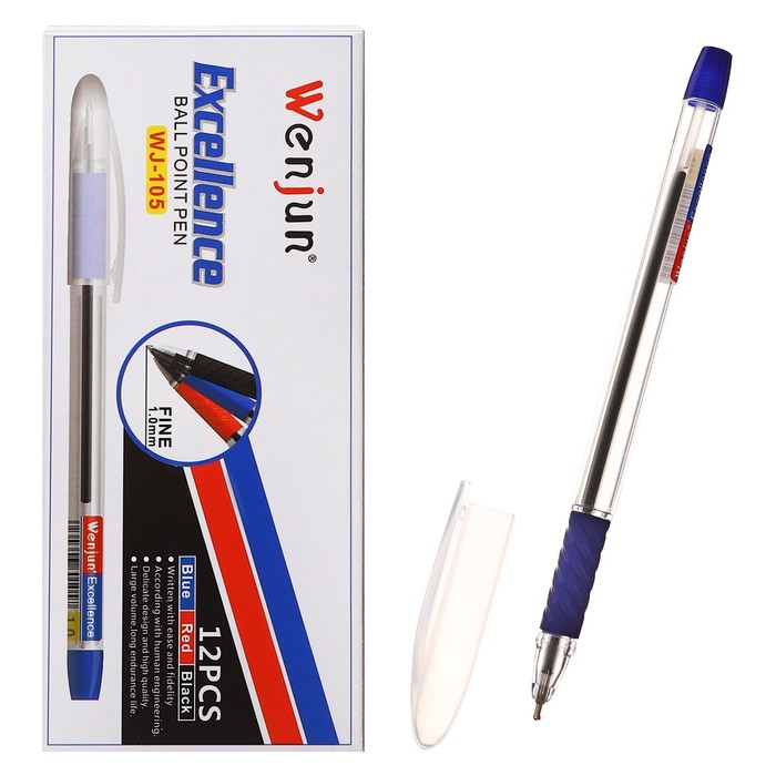 Набор шариковых ручек 12 штук, 1,0мм, корпус с резиновым держателем, чернила синие — Характеристики